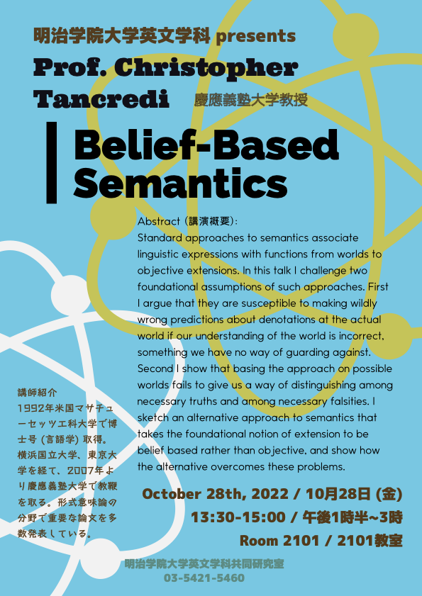 2022年10月28日 英語学コース講演会開催のお知らせ - Prof. Christopher Tancredi