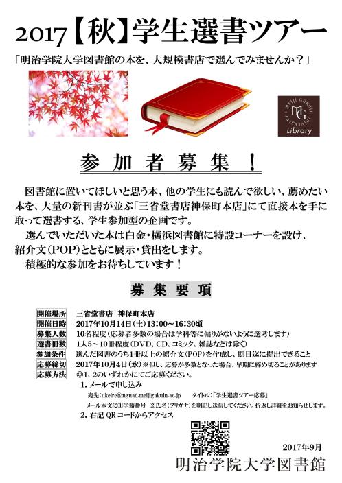 ※詳細は、添付の『2017【秋】学生選書ツアー 募集ポスター』をご確認ください。