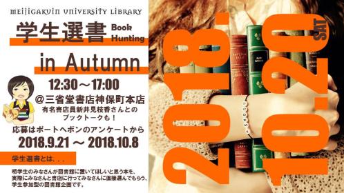 明学生のみなさんが図書館に置いてほしいと思う本を、実際にみなさんと書店に行ってみなさんに直接選んでもらう、学生参加型の図書館企画です。