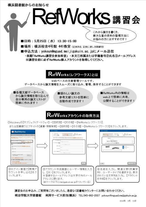 【横浜校舎図書館】RefWorks講習会開催のお知らせ