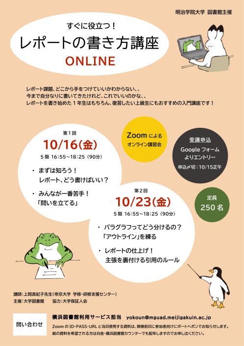【横浜校舎図書館】10/16スタート!「すぐ役に立つ!レポートの書き方講座ONLINE」のお知らせ