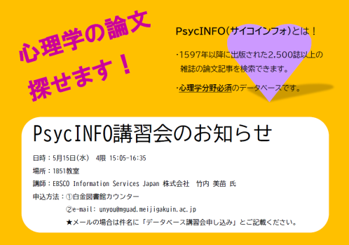 【白金校舎図書館】心理学を学ぶ人必見!PsycINFO講習会情報