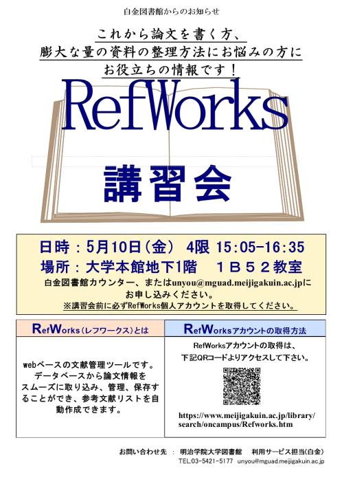 【白金校舎図書館】RefWorks講習会のお知らせ