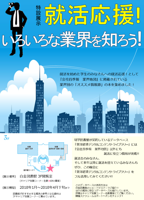 展示場所:白金図書館3F特設展示コーナー(キャリア支援コーナー両隣)