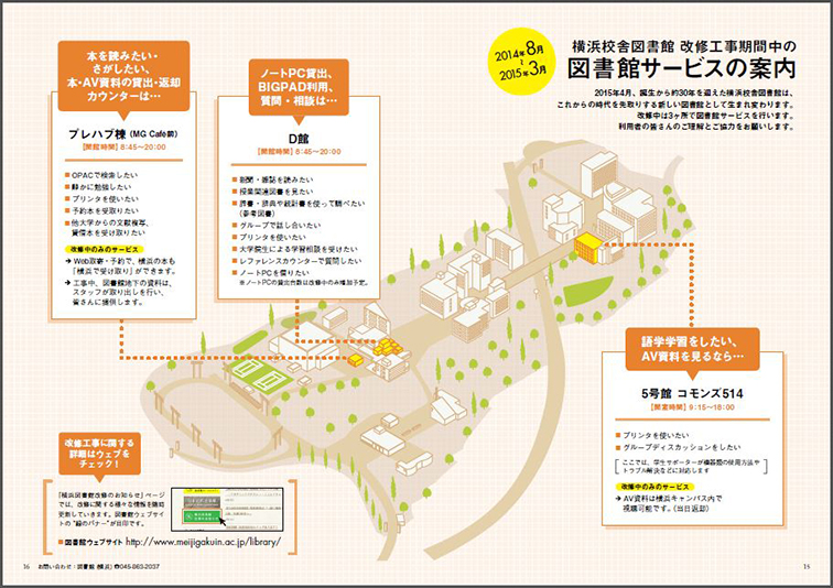 「横浜図書館 改修のお知らせ」ページをWebサイト上に開設し、改修工事の進捗報告やサービスのご案内など、利用者への広報を展開しました。