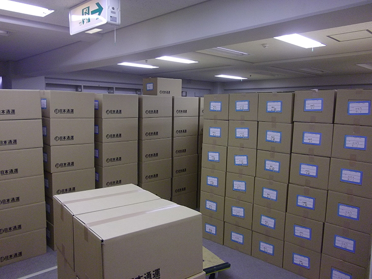 請求された地下書庫の資料取り出し