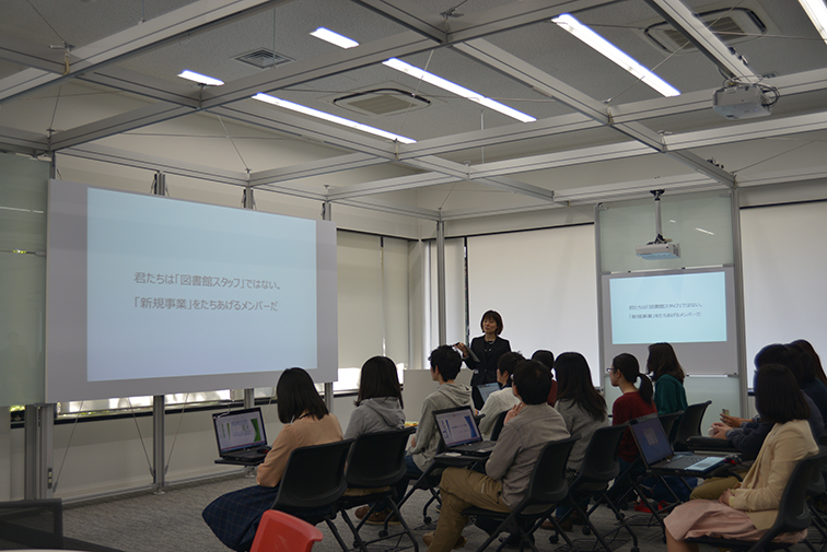 「日本一の図書館になるためには」をテーマにブレーンストーミングを行い、自分たちはどのような活動をしていくべきかを考えました。オープニングセレモニーでは来賓の方への館内ツアーを担当し、学生サポーターとしての新たな一歩を踏み出しました。