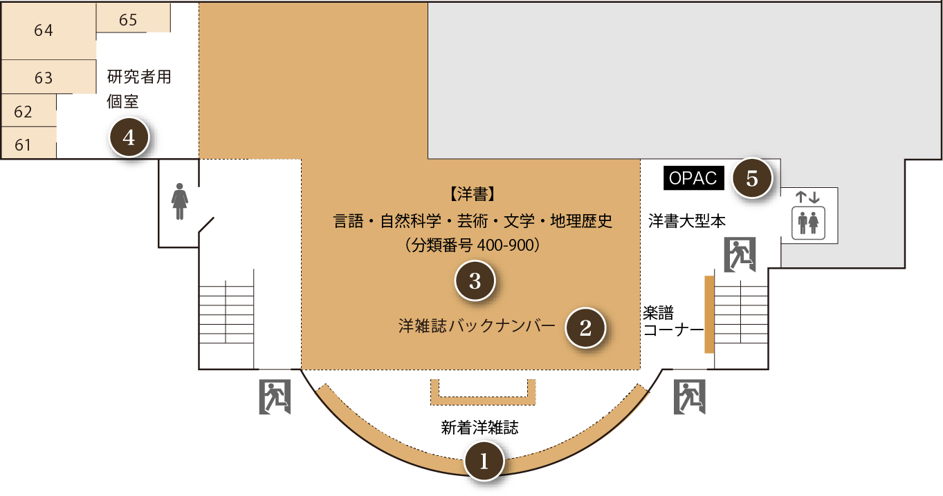 教員・大学院生用の個室です。図書館の図書・資料を用いた研究・調査のために利用できます。利用受付は2Fメインカウンターです。