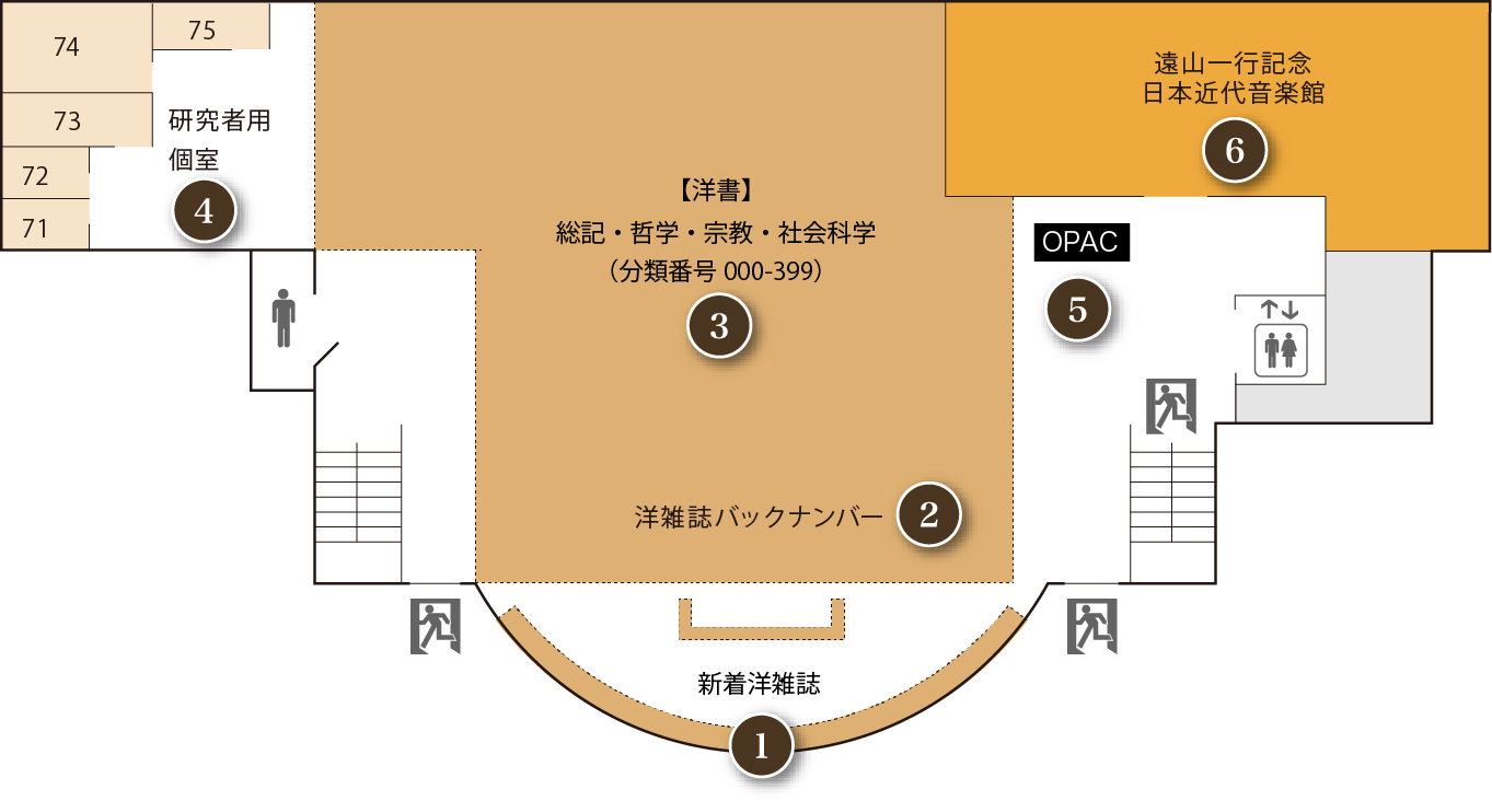 教員・大学院生用の個室です。図書館の図書・資料を用いた研究・調査のために利用できます。利用受付は2Fメインカウンターです。